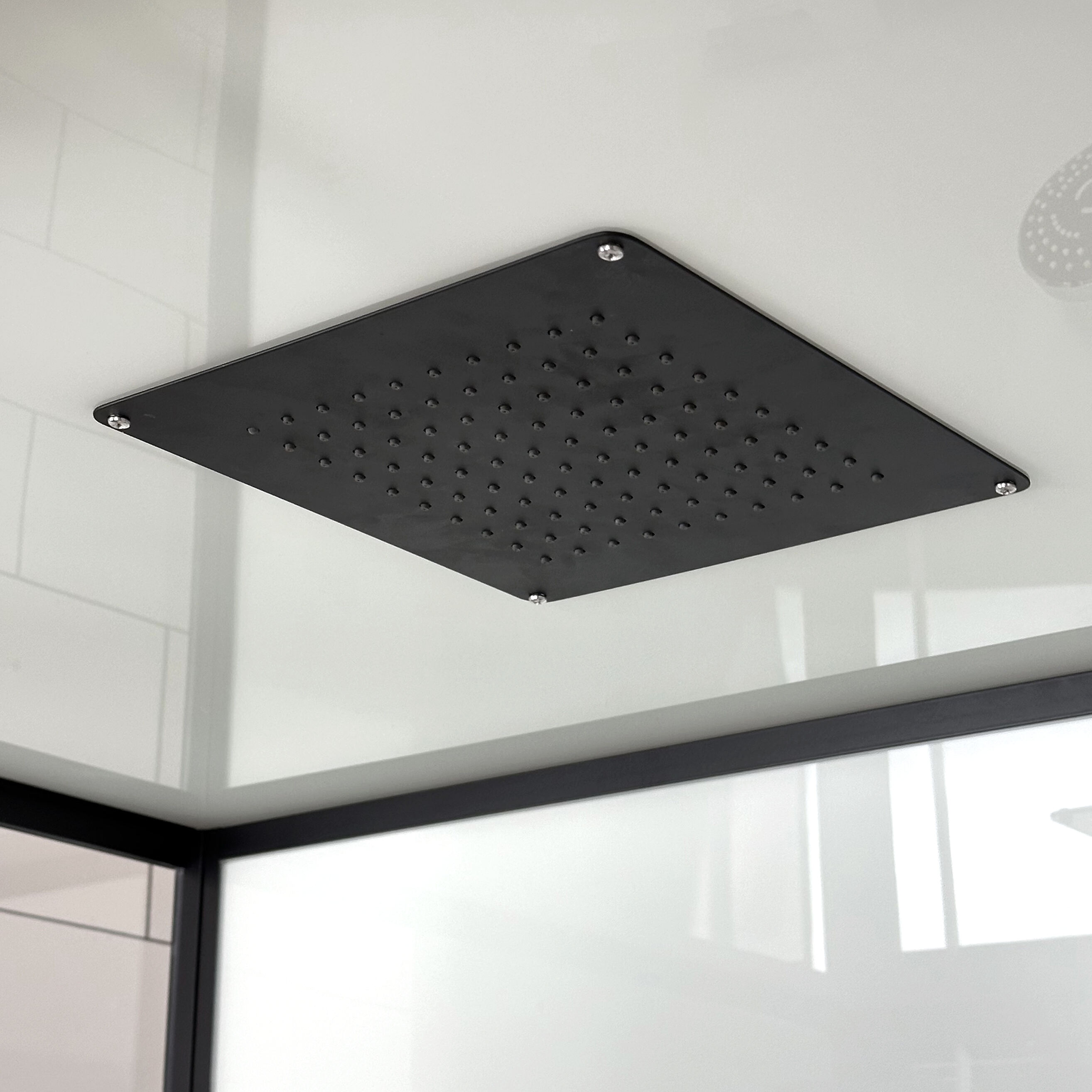 Vách tắm kính cường lực hình vuông có khung thép không gỉ
