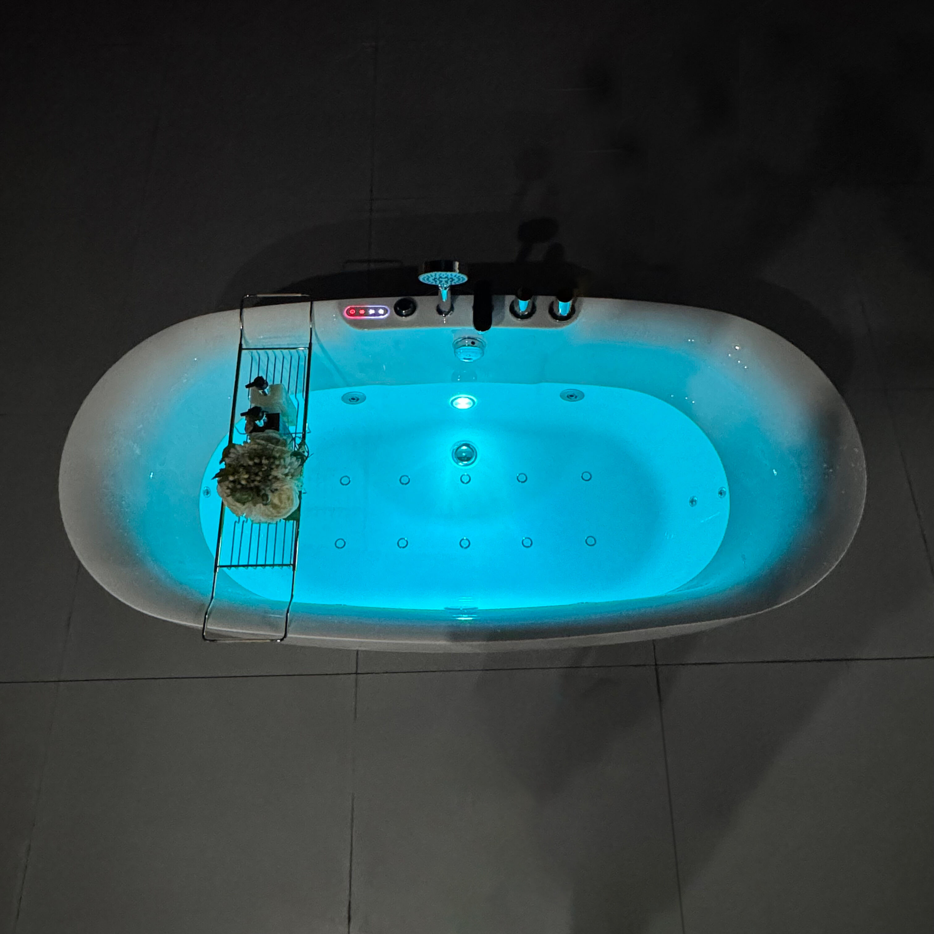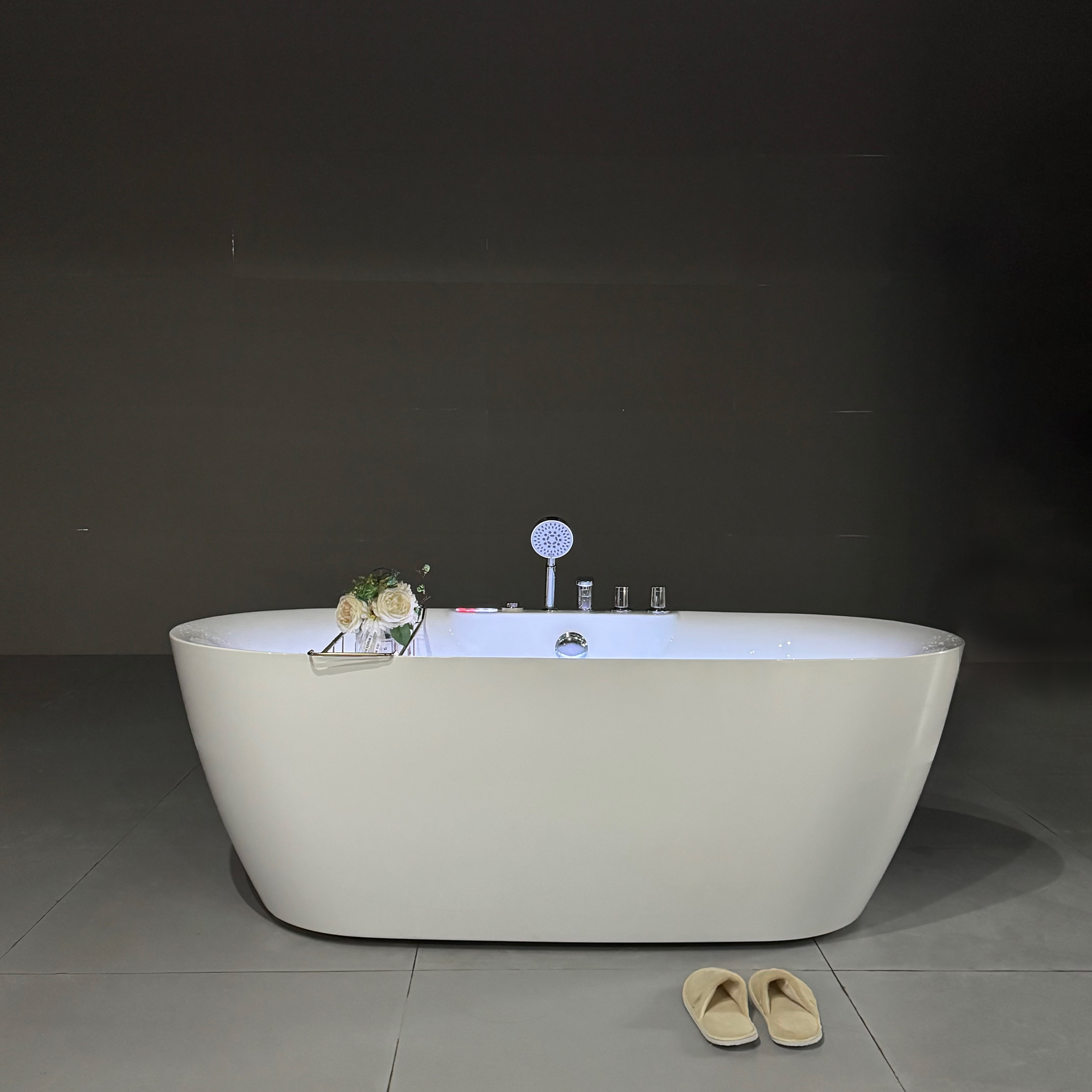 Bồn ngâm độc lập HOKO thiết kế hiện đại bằng nhựa acrylic trắng có đèn LED, có xả nước, dùng cho người lớn, phù hợp sử dụng trong khách sạn sang trọng và biệt thự